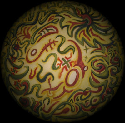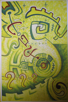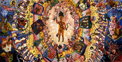 Wince's most ambitious painting, in process since 1994, is the 12-foot-by-six-foot "Mother Russia Meltdown." When it's not being toted around to galleries, the huge oil on canvas is housed in Wince's bedroom ("It's the only room large enough to hold it"), where the temptation to fine-tune its tangled web of images is ever present. The work is a fantasia on the theme of the former Soviet Union's collapse and an unmistakable, no-holds-barred masterpiece. Designed something like folding money from another planet, it blends hundreds of images in a punkadelic Sistine vision of imploding one-world culture, hovering around a central image of a baby with Medusa hair.