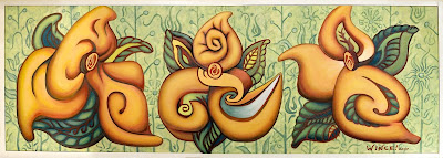 His work can be surreal and cartoonish; he says he read underground comics (the likes of R. Crumb) growing up. The pop elements in his paintings are "a reflection of my environment."
